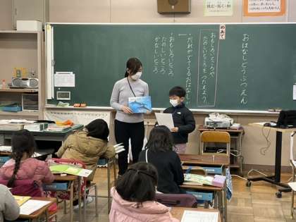 中学部のリーディングコンテスト、小学部の意見発表と説明の様子です。