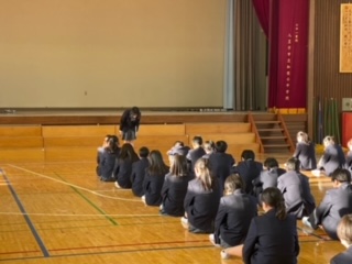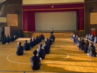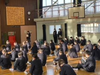 中学部、今週のスタートは生徒会朝礼からです。1年は、明日からスキー移動教室です。