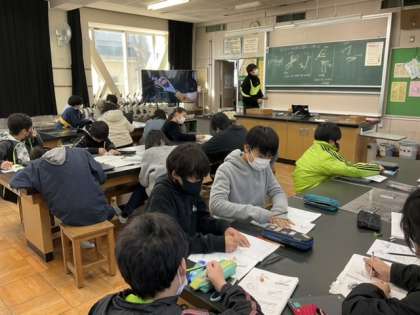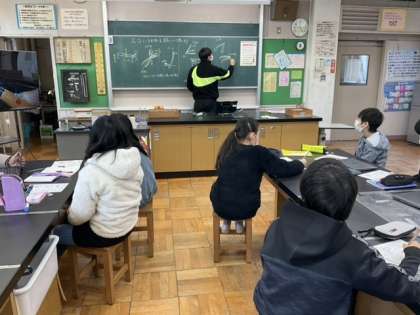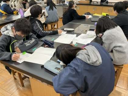 1校時、理科室にいます。