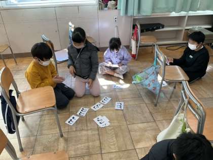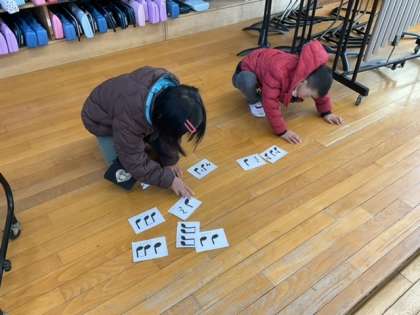 ペアで、リズムカードのリズムを手拍子します。