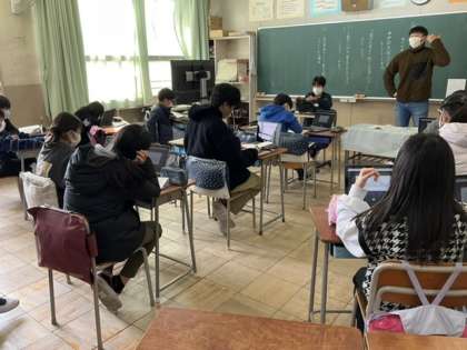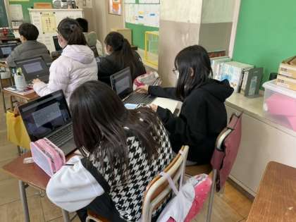 3校時、「伊能忠敬がどんな人か」をタブレットで共有しています。