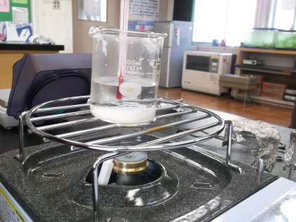 水の温度が上がると、溶ける物の量が増えていくかを調べます。