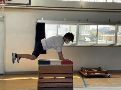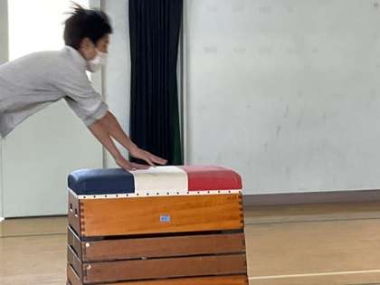 4校時、跳び箱をしています。