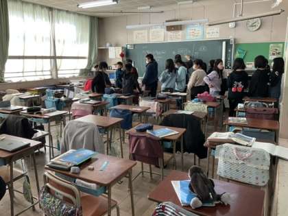 5校時、「Where is 施設名 ?」の文で学習していました。
