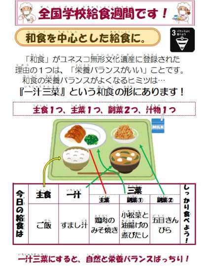 学校給食週間5日目は、「一汁三菜 和食献立」です。