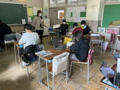 4校時、1年生との交流の準備をしています。