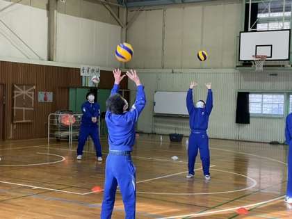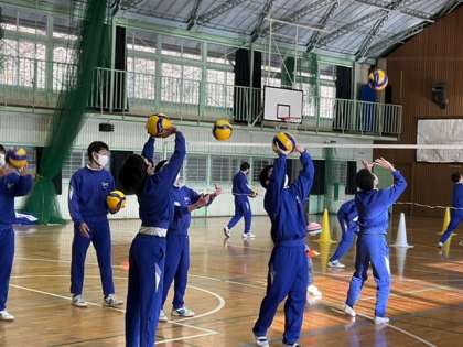 オーバーハンドパスの練習をしています。