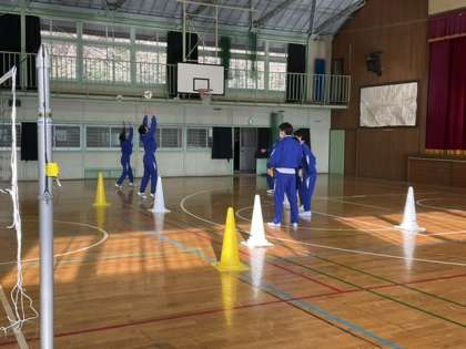1校時、男子は体育館でバレーボールです。
