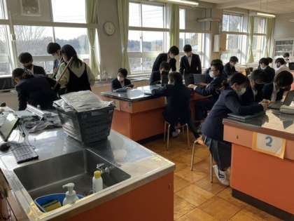 後片付け、タブレットで振り返り、掃除を手際よく進めています。