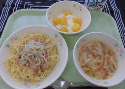 今日は、牛乳を使った杏仁豆腐風のデザートです。