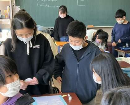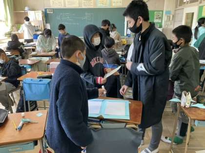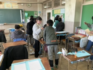 2校時、メッセージカードを作っています。
