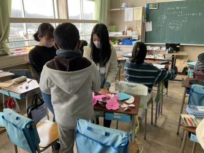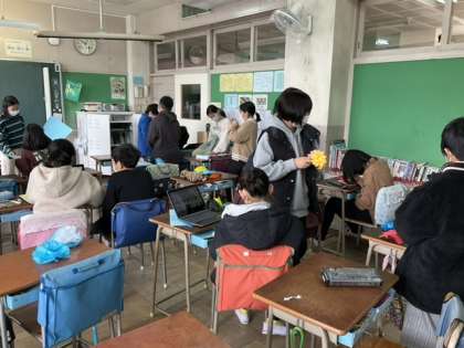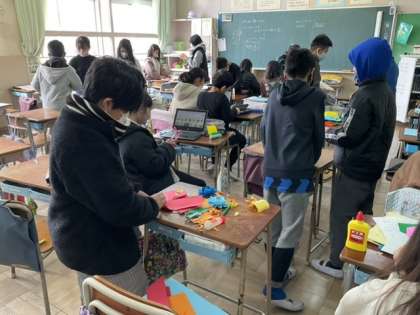 2校時、メッセージカードを作っています。