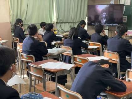 動画を見ながら、花火の作り方の説明を聞き取っています。