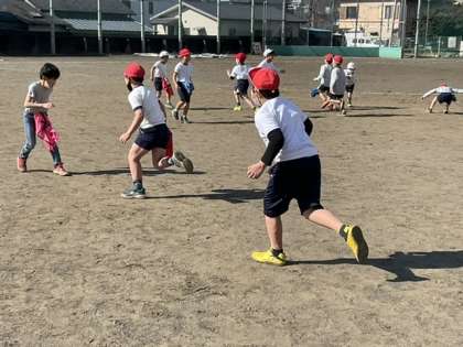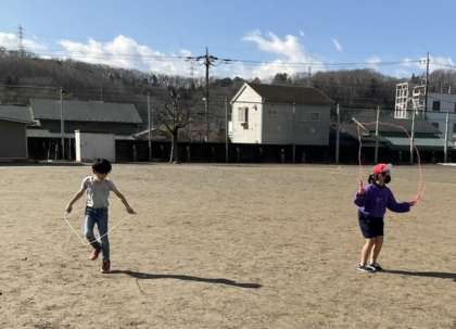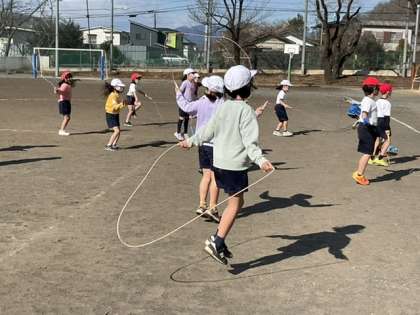 寒い中、元気に走ったり、縄跳びをしたりしています。