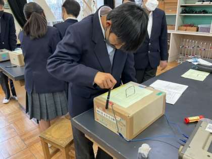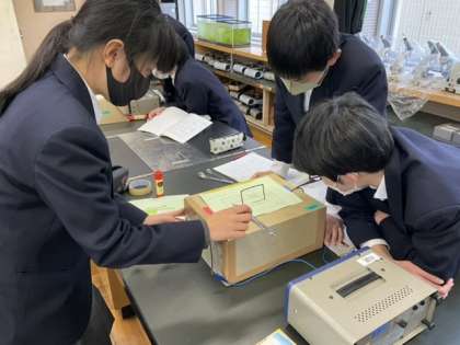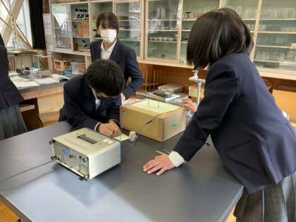 5校時、理科室で実験中です。