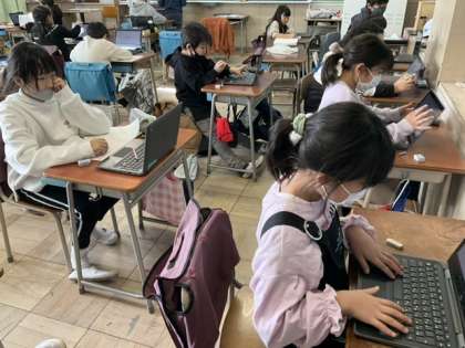 水の中でも音が伝わるかを調べて、ノートにまとめます。