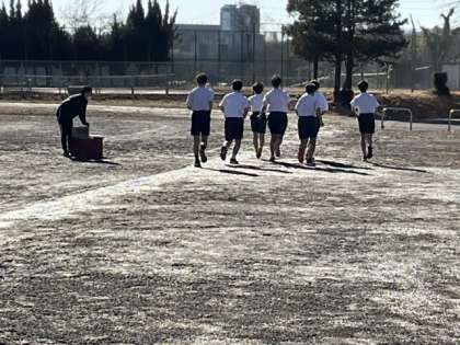 グランドの霜が溶けて、ちょっとコンディションが悪いです。