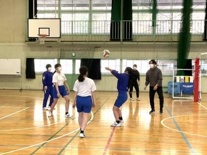トスをあげてもらい、スパイクを打つ練習をしていました。