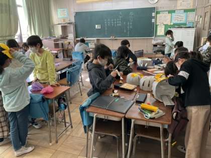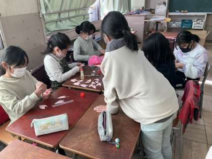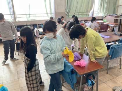6校時、くす玉を作っています。