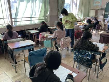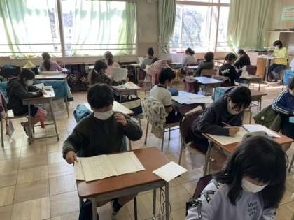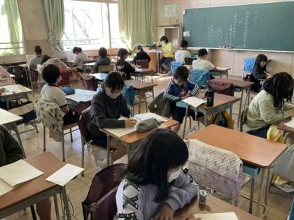 3校時、テストが終わって、作文を書いています。