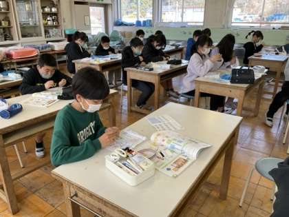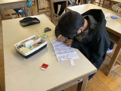 2校時、ボタンの付け方の学習です。