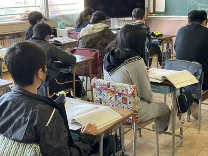 1校時、資料の調べ方の復習をしています。