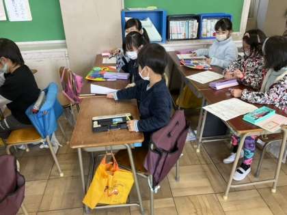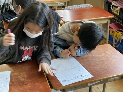 2校時、保育園との交流会の準備です。