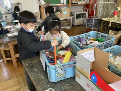 3校時、「かみざらコロコロ」と言う作品づくりです。