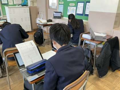 2校時、職業新聞づくりをしています。