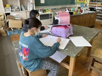 6年間背負ってきたランドセルの絵を描いています。
