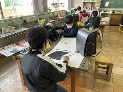 1校時、「ランドセル」と言う題の作品づくりです。