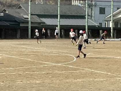 1校時、校庭を元気に走り回っています。