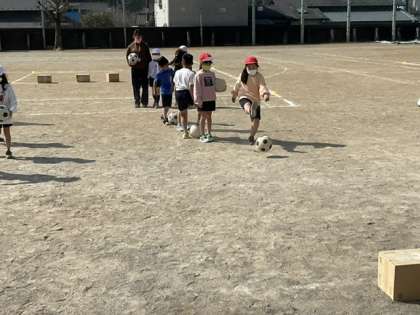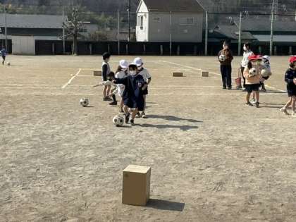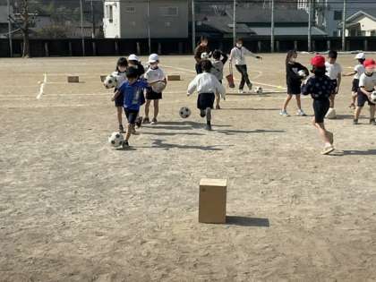 的をねらってボールを蹴ります。