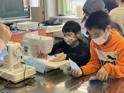 5年生では、ミシンの学習をしています。