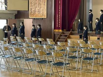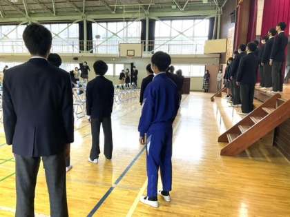 中学部3年生は、卒業式の練習や奉仕活動をしています。