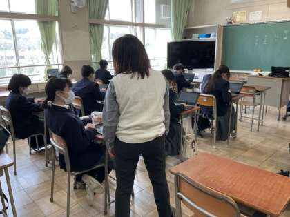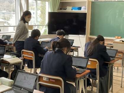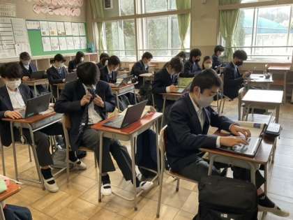 タブレットで、別の登場人物の視点から描く活動をしています。