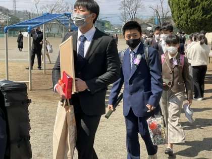 担任を先頭に、晴れやかな笑顔で歩いていました。