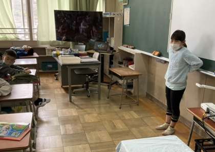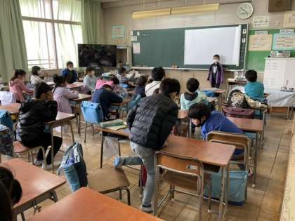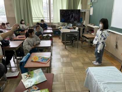 2校時、自己紹介をしています。