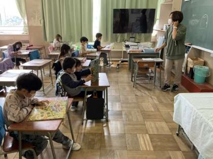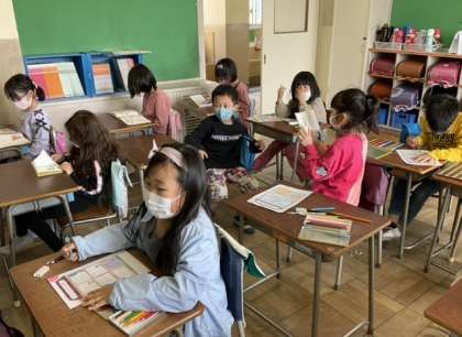 3校時、自己紹介カードを書きました。