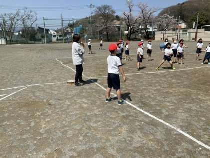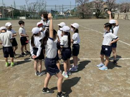 3校時、校庭で体育です。