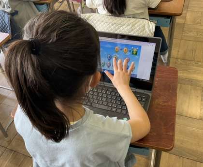 3校時、タブレットで計算ゲームにチャレンジです。
