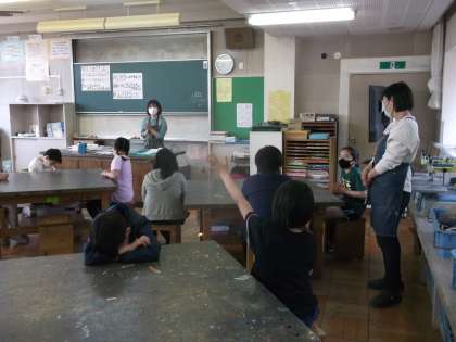 4年生の図工は、中学部美術教諭も入り、授業を行いました。