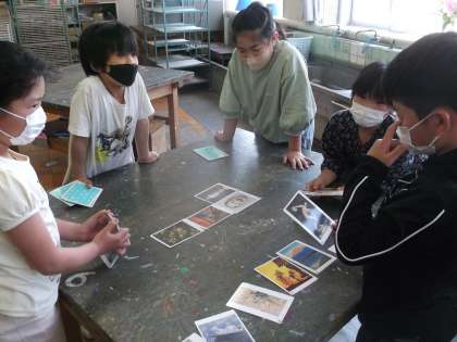 アートカードの画像の共通点を探し、みんなで発表していきます。