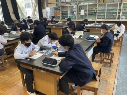 理科室に戻って、ルーペで観察中です。