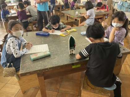 初めての授業なので、自己紹介カードを書いています。