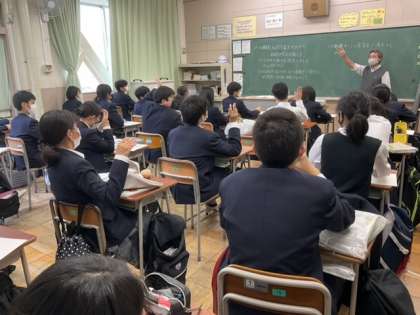玉ねぎの根の先端を、酢酸カーミン溶液で染めて観察します。