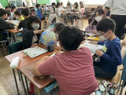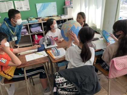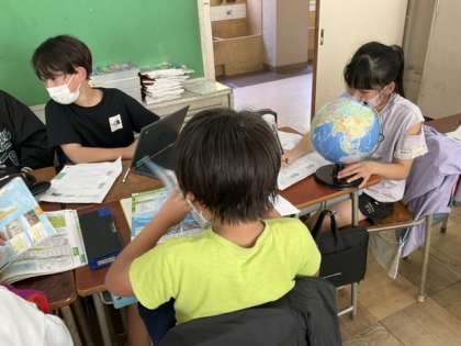 地球儀を使って、ワールドツアーです。