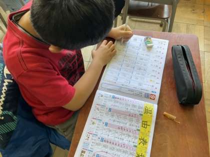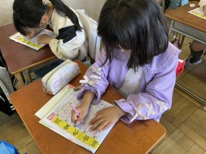 1校時、漢字の学習をしています。