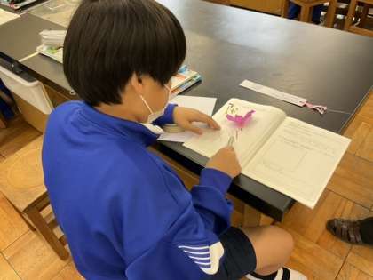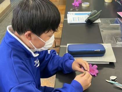 ツツジの花を分解し、花のつくりを調べています。