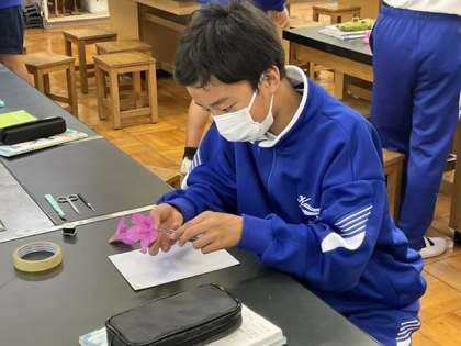 4校時、理科室で実験中です。